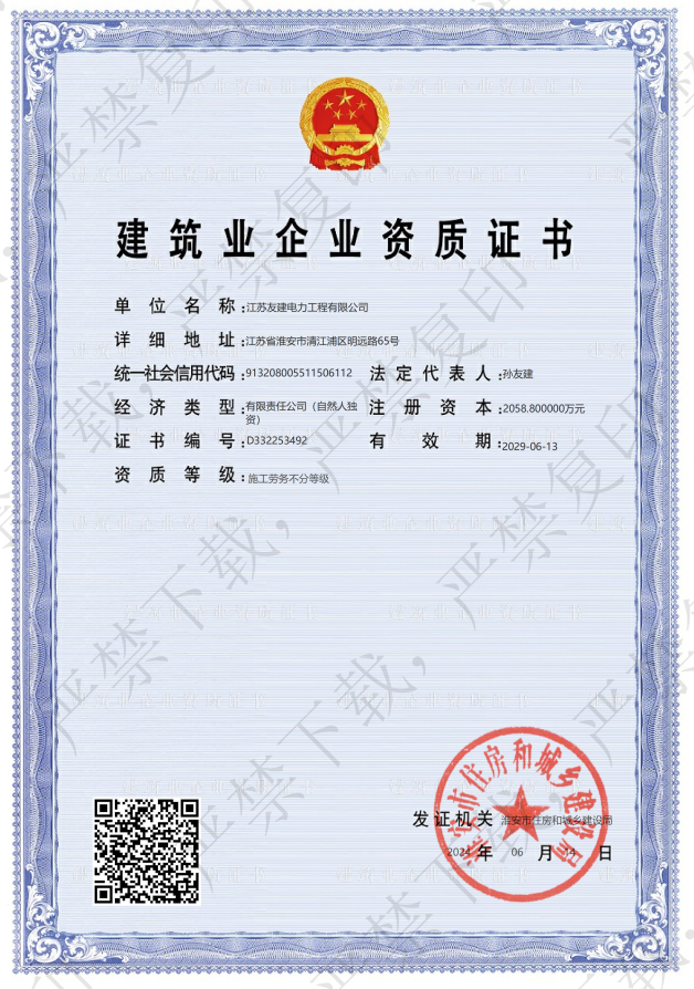 公 司:江苏友建电力工程有限公司