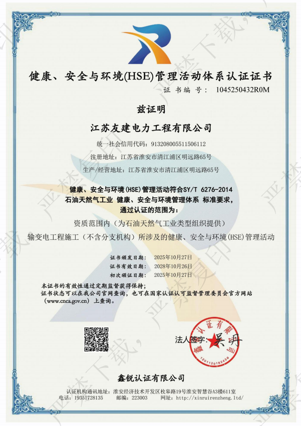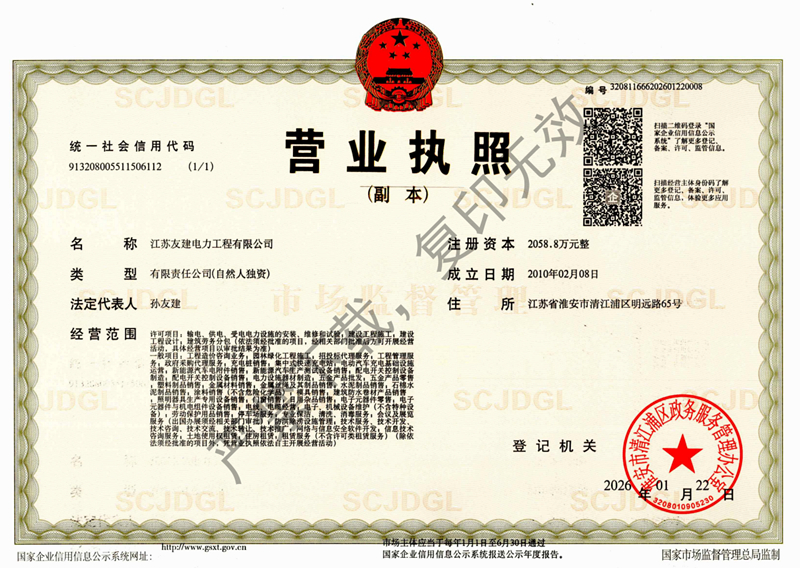 公 司:江苏友建电力工程有限公司