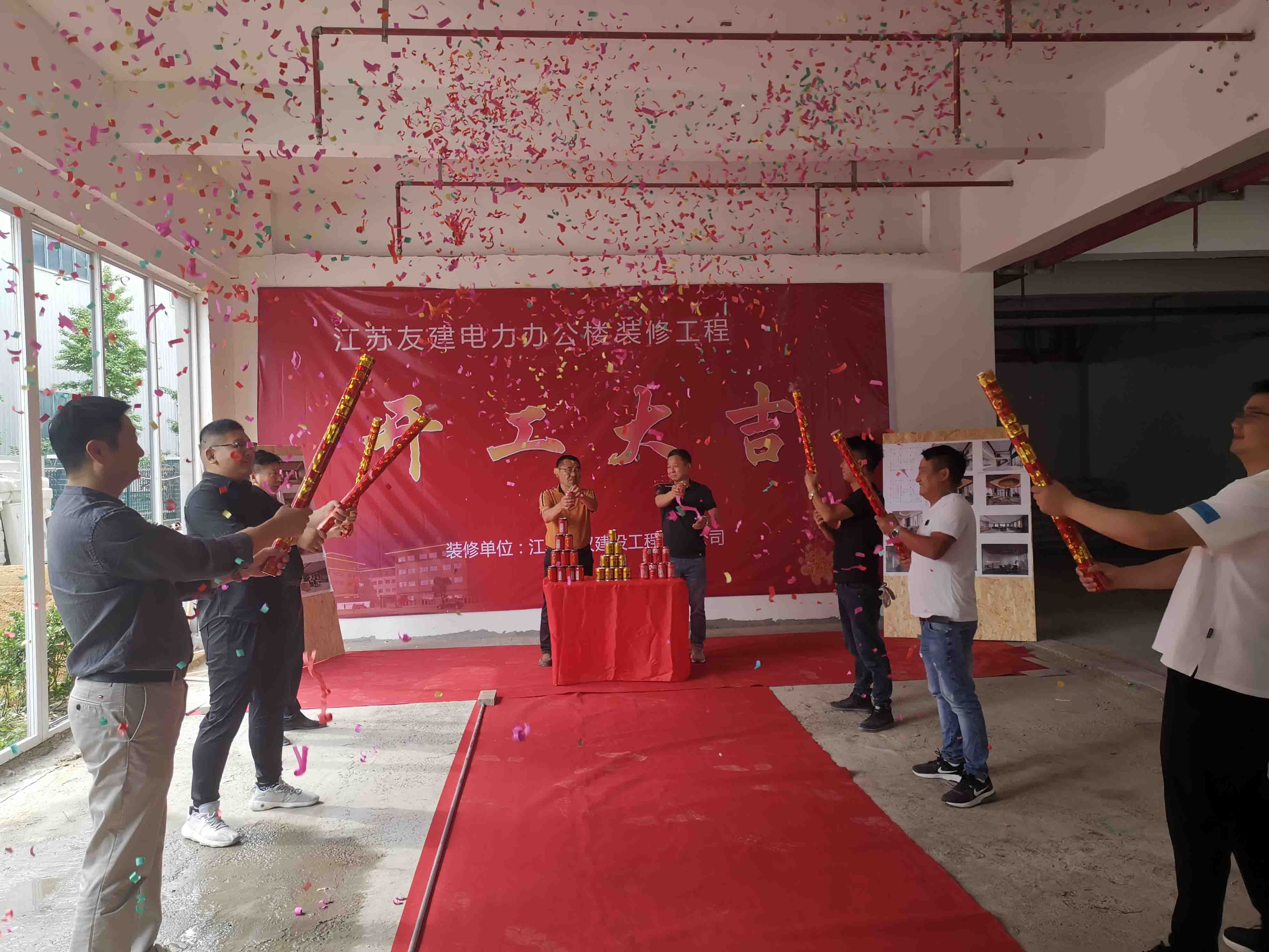 2023年6月13日上午8时58分,江苏友建电力工程有限公司办公楼装修工程开工仪式隆重举行。公司工程项目经理、现场负责人、工会主席,施工方代表共同出席仪式,一起见证这一重要时刻。